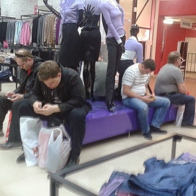 Para pria 'malang' itu dapat ditemukan sedang berdiri di kamar pas, menemukan tempat yang nyaman di kursi, atau duduk di tanah.